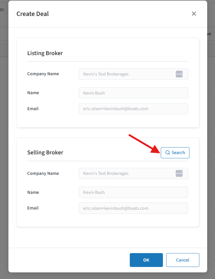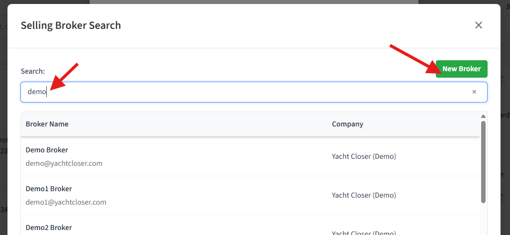 If the other broker is a YachtCloser user, you can easily pull them into the Deal by using the Search box. Or if they are not a YachtCloser user, simply click on New Broker.