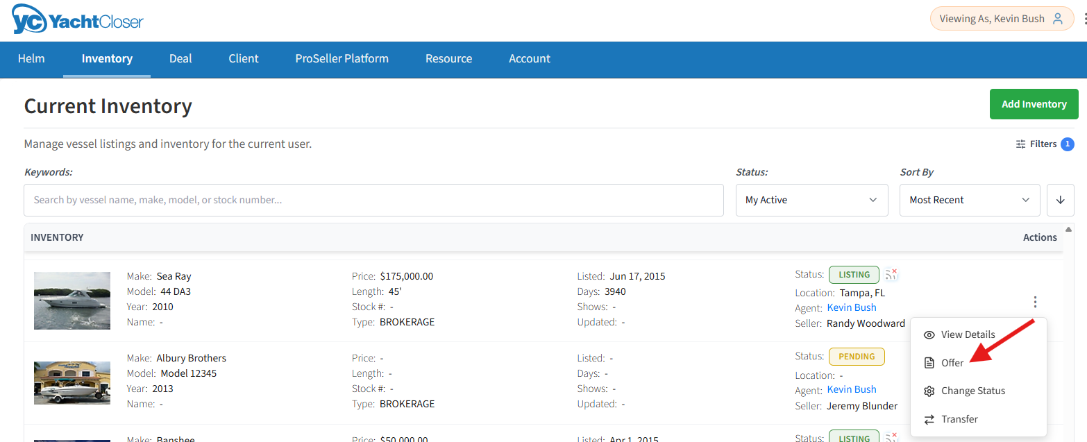 PLEASE NOTE: If you are the Listing Broker and already have the Listing under the Inventory tab, do not add a new deal. You can turn the current inventory into a deal by clicking the 3 vertical dots under the Actions column on the Inventory page, as displayed below.