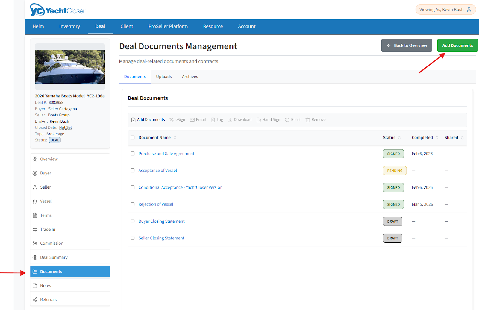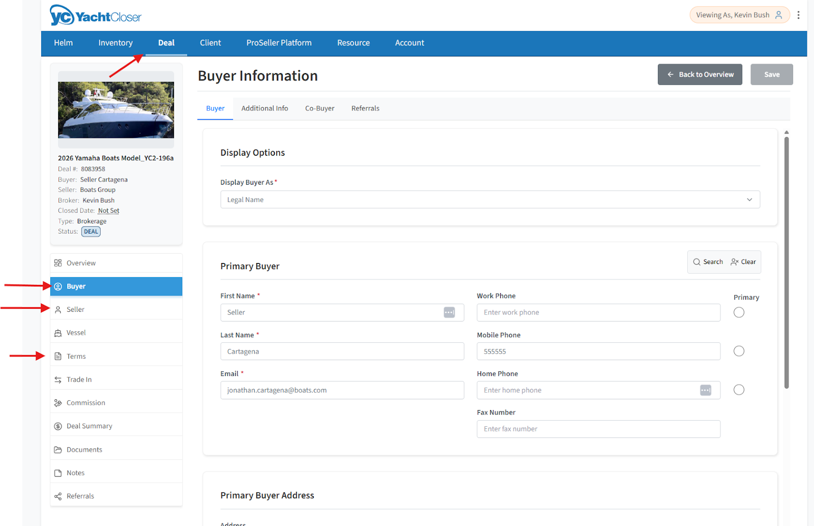 3) Add Vessel Info; If you are the Listing Broker and clicked the Offer button to turn an existing Inventory into a Deal, the Vessel information will automatically transfer over.